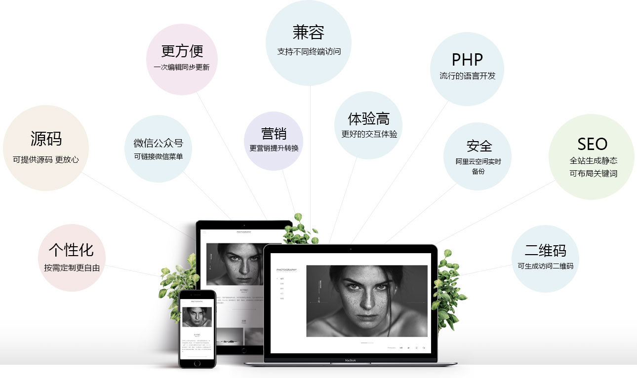 套餐域名、云虛擬空間、備案、維護(hù)及PHP+MYSQL友好的管理界面,適應(yīng)不同的終端設(shè)備(IPAD、手機(jī)均支持)